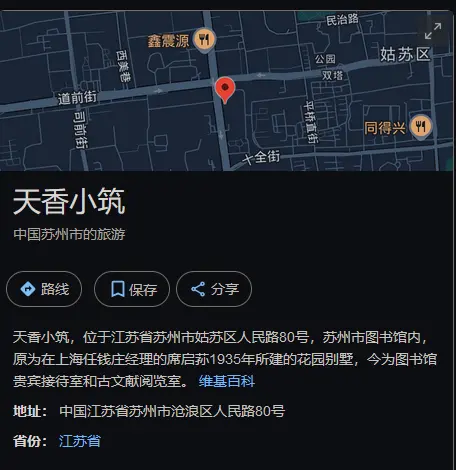 因为画质太糊加上字体问题看不清网址,于是直接搜「天香小筑」,发现是一个位于苏州的建筑。